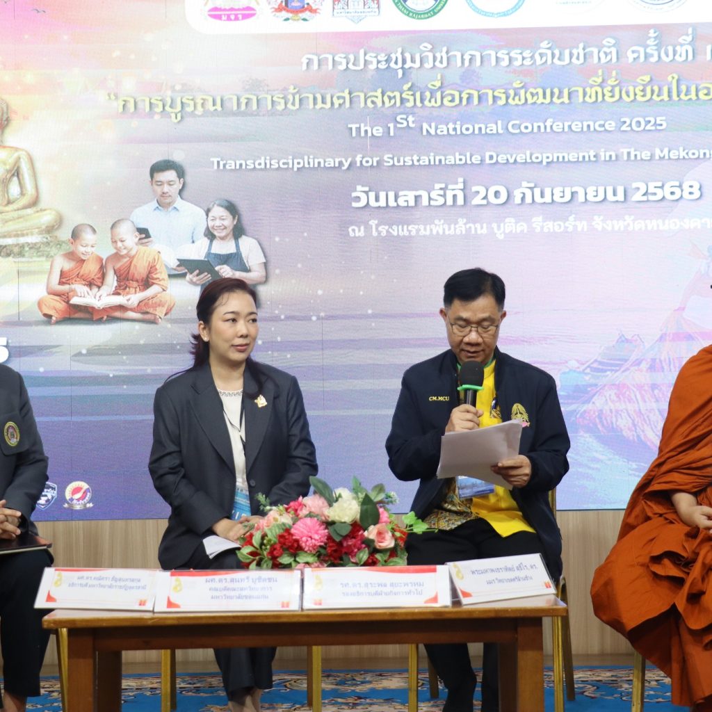 มหาวิทยาลัยมหาจุฬาลงกรณราชวิทยาลัย วิทยาเขตหนองคาย จัดประชุมวิชาการระดับชาติ ครั้งที่ ๑ “การบูรณาการข้ามศาสตร์เพื่อการพัฒนาที่ยั่งยืนในอนุภาคลุ่มน้ำโขง” The 1st NATIONAL CONFERENCE 2025 “TRANSDISCIPLINARY FOR SUSTAINABLE DEVELOPMENT IN THE MEKONG SUB-REGION” #ชุดที่ ๕ วันที่ ๒๐ กันยายน ๒๕๖๘ เวลา ๐๙.๐๐ น. มหาวิทยาลัยมหาจุฬาลงกรณราชวิทยาลัย วิทยาเขตหนองคาย ร่วมกับภาคีเครือข่าย จัดประชุมวิชาการระดับชาติ ครั้งที่ ๑ ภายใต้หัวข้อ “การบูรณาการข้ามศาสตร์เพื่อการพัฒนาที่ยั่งยืนในอนุภาคลุ่มน้ำโขง” The 1st NATIONAL CONFERENCE 2025 “TRANSDISCIPLINARY FOR SUSTAINABLE DEVELOPMENT IN THE MEKONG SUB-REGION” ณ โรงแรมพันล้าน บูติค รีสอร์ท หนองคาย อำเภอเมืองหนองคาย จังหวัดหนองคาย ในรูปแบบ Onsite เพื่อเปิดพื้นที่แลกเปลี่ยนองค์ความรู้จากหลากหลายศาสตร์ สู่กาการบูรณาการข้ามศาสตร์เพื่อการพัฒนาที่ยั่งยืนในอนุภาคลุ่มน้ำโขง